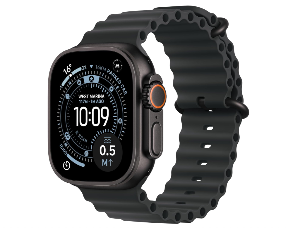 Apple Watch Ultra 3 GPS + Cellular 49mm Premium Running and Multisport Smartwatch with Rugged Black Titanium Case with Black Ocean Band. Advanced Health and Fitness Tracking